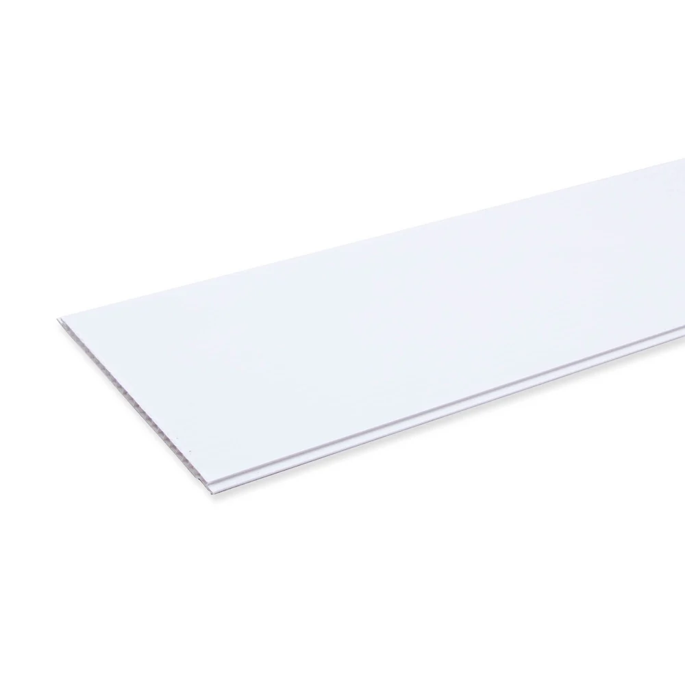 Este panel de PVC presenta un acabado blanco liso que proporciona una apariencia minimalista y moderna. Su composición garantiza resistencia, fácil mantenimiento y una estética versátil para diferentes tipos de ambientes interiores.